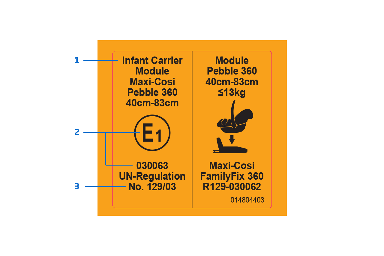 - L'etichetta conferma che il seggiolino auto è conforme alla norma R129, lo standard europeo più sicuro attualmente in vigore.
