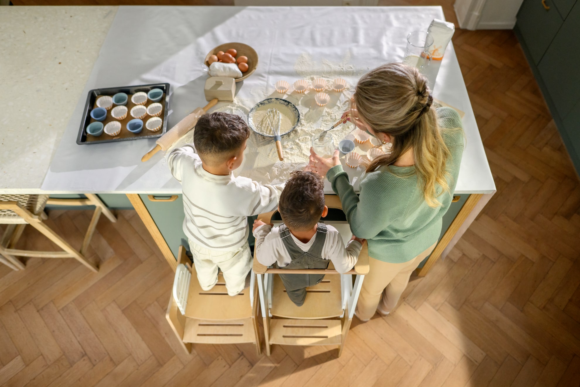 La cucina è l'ambiente perfetto per permettere al tuo bambino di esprimere la sua curiosità con una torre di apprendimento. In tutta sicurezza, lascialo raggiungere il piano di lavoro, consentendogli di partecipare a semplici attività di preparazione del cibo insieme a te.