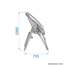 In caso di macchie di yogurt o schizzi di sugo, Ava Plus affronta il disordine con tessuti resistenti alle macchie e una seduta in pelle vegana facile da pulire. Una volta terminato il pasto, la struttura leggera e il vassoio rimovibile con una sola mano (lavabile in lavastoviglie) sono facili da chiudere e da riporre, in modo da recuperare spazio in pochi secondi.
