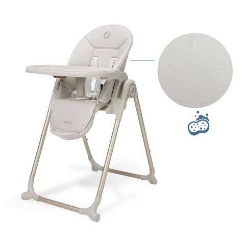 In caso di macchie di yogurt o schizzi di sugo, Ava 2 affronta il disordine con tessuti resistenti alle macchie e una seduta in pelle vegana facile da pulire. Una volta terminato il pasto, la struttura leggera e il vassoio rimovibile con una sola mano (lavabile in lavastoviglie) sono facili da chiudere e da riporre, in modo da recuperare spazio in pochi secondi.