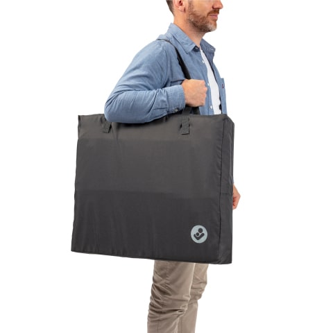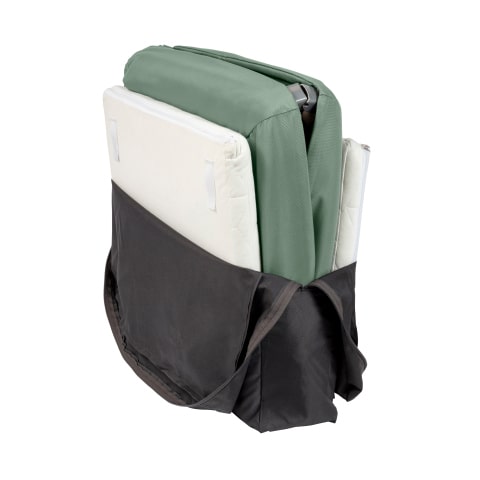 Il lettino da viaggio Calao Light è il più compatto e leggero del suo genere e può essere chiuso in pochi secondi per trasportarlo facilmente.