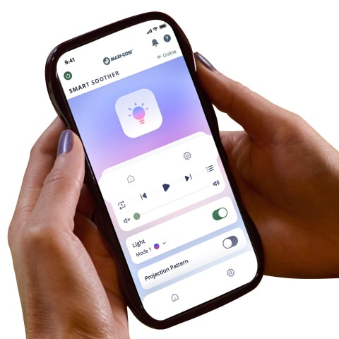 Personalizza l'ambiente di riposo del bambino da qualsiasi luogo: regola le luci, i suoni e le altre funzionalità tramite la App, i pulsanti integrati o Google Home.