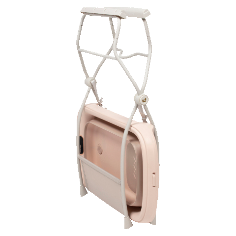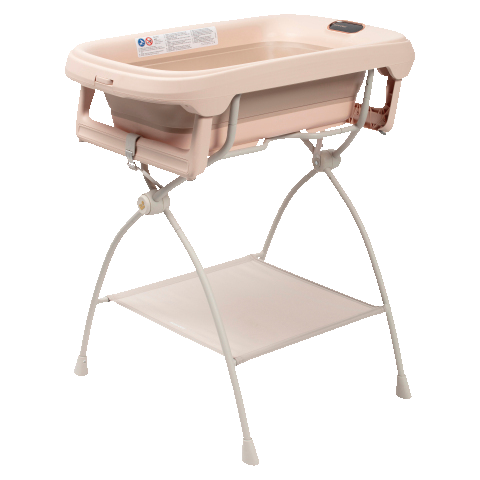 Non dovrai più piegarti: il supporto Indigo porta la vaschetta per il bagnetto del tuo bambino all'altezza perfetta (1 m), così potrai lavarlo senza mal di schiena, mentre si diverte e ride.