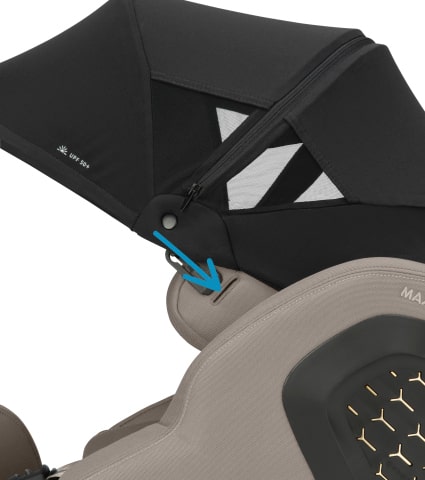 La capottina parasole si fissa in modo rapido e semplice al poggiatesta di Pearl Slide Pro.