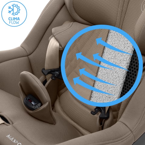 - Il bambino godrà del massimo comfort durante tutto l'anno grazie ai pannelli di ventilazione ClimaFlow del seggiolino auto, alla schiuma traspirante e ai tessuti in rete del seggiolino auto che favoriscono la circolazione dell'aria.
