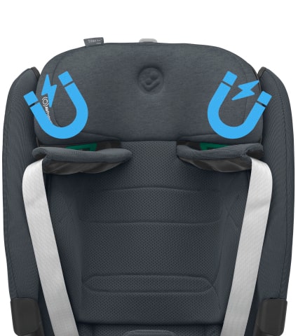Le cinture di sicurezza a 5 punti sono dotate di magneti magici negli spallacci per fare in modo che le cinture non siano di intralcio quando posizioni il tuo bambino nel seggiolino.