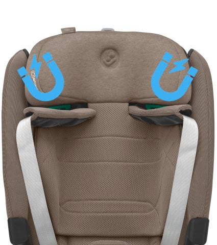 Le cinture di sicurezza a 5 punti sono dotate di magneti magici negli spallacci per fare in modo che le cinture non siano di intralcio quando posizioni il tuo bambino nel seggiolino.